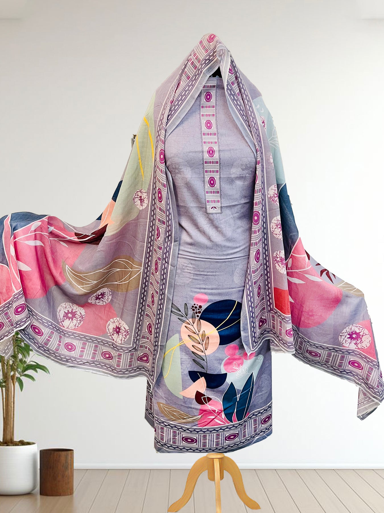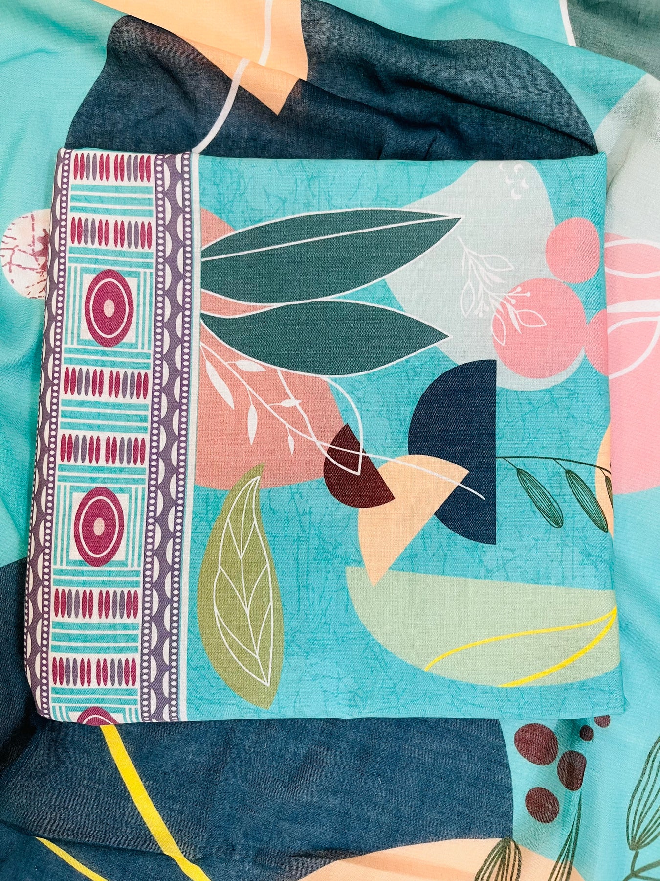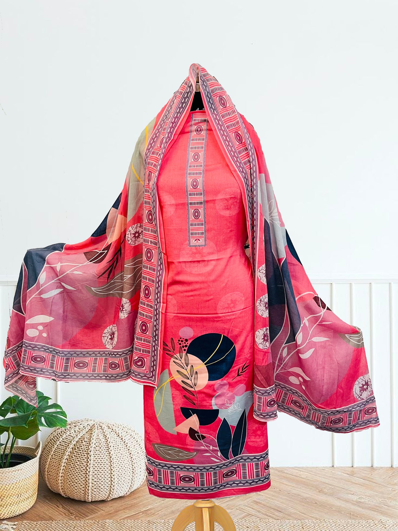 cotton unstiched suit with handwork aari and printed soft dupatta & bottom