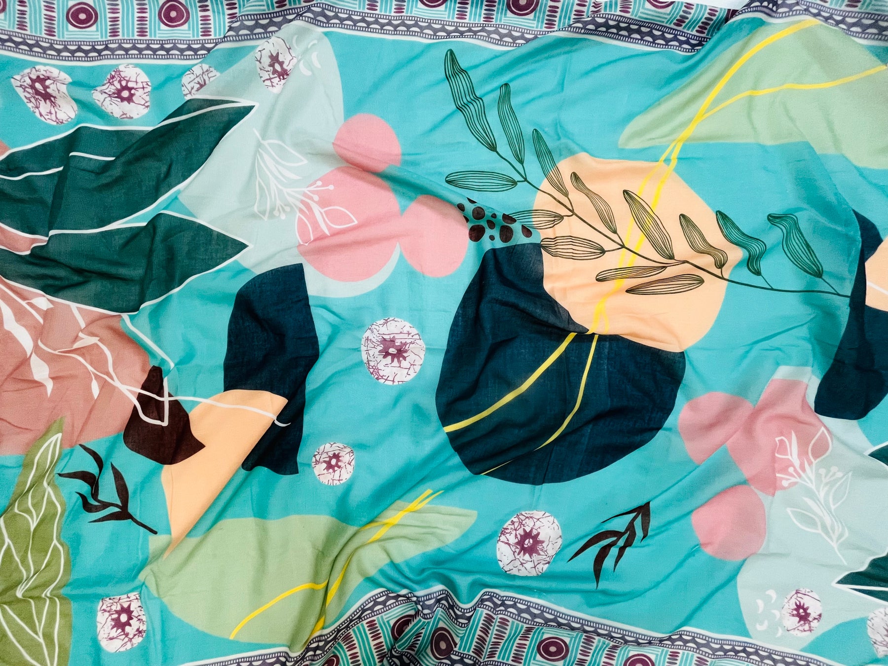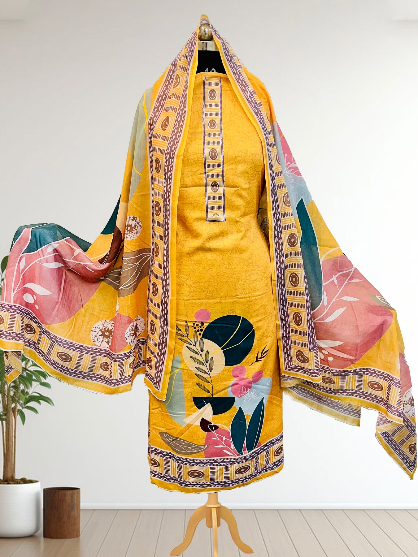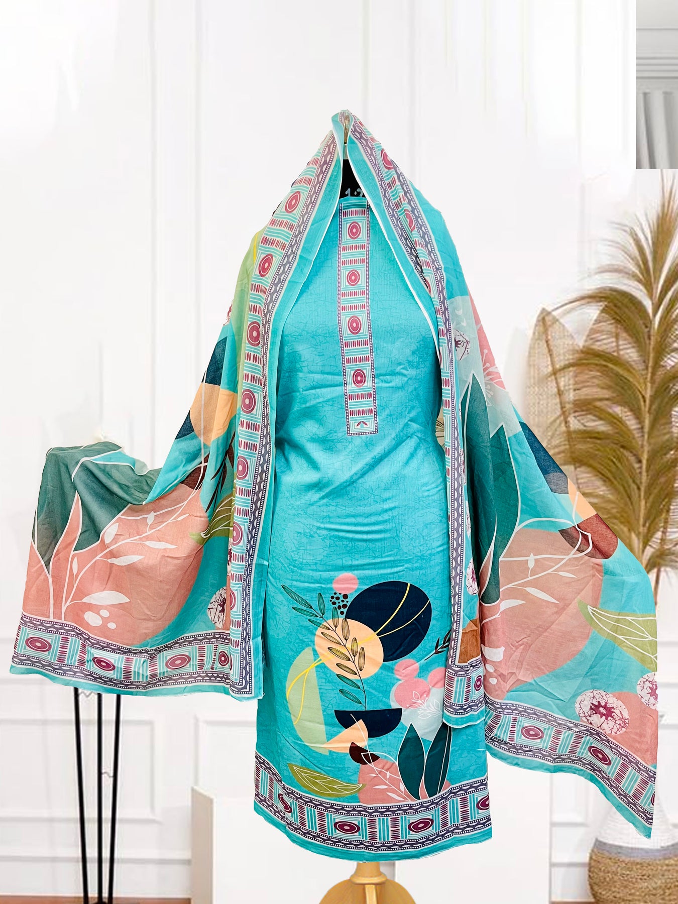 cotton unstiched suit with handwork aari and printed soft dupatta & bottom