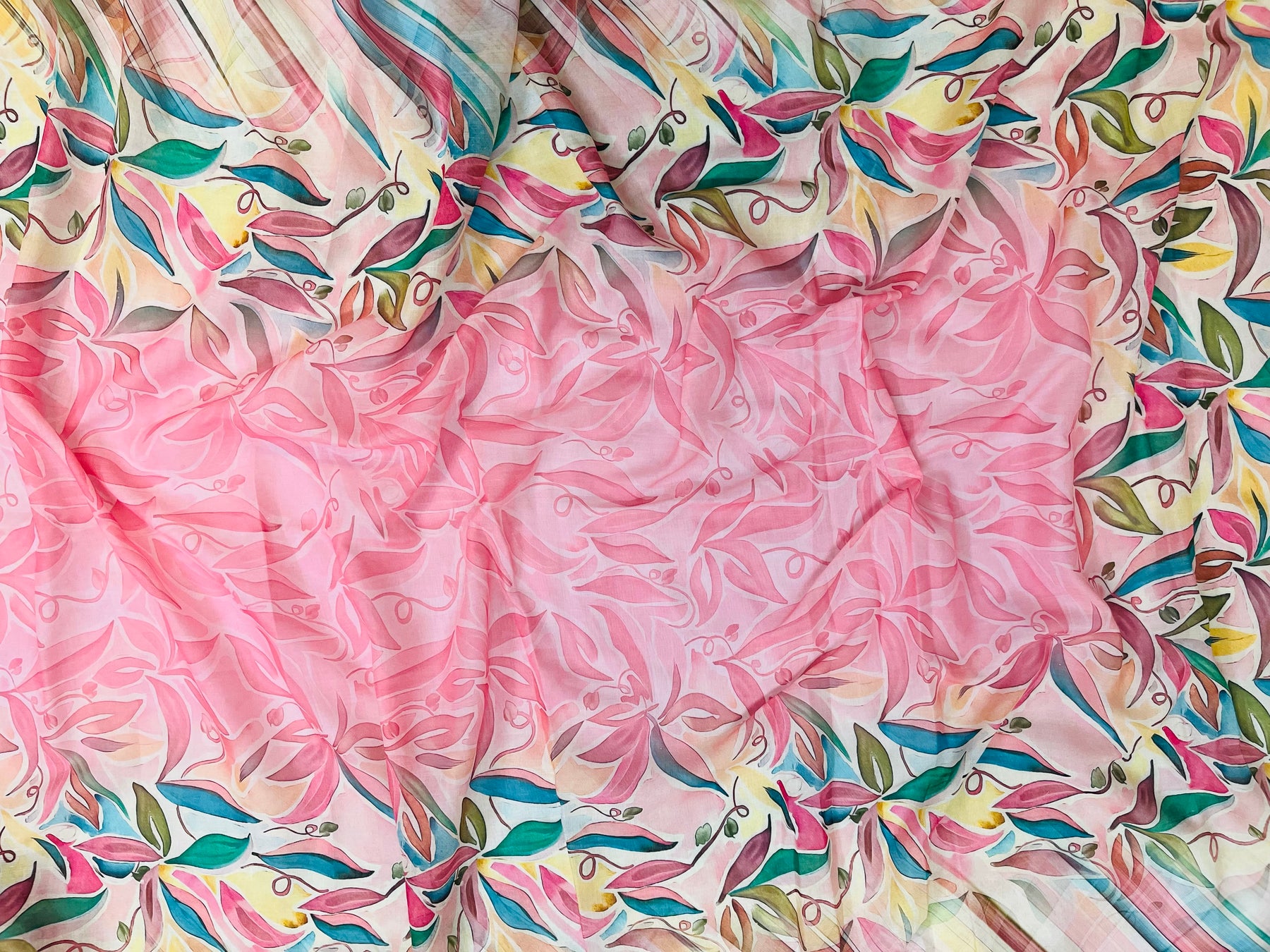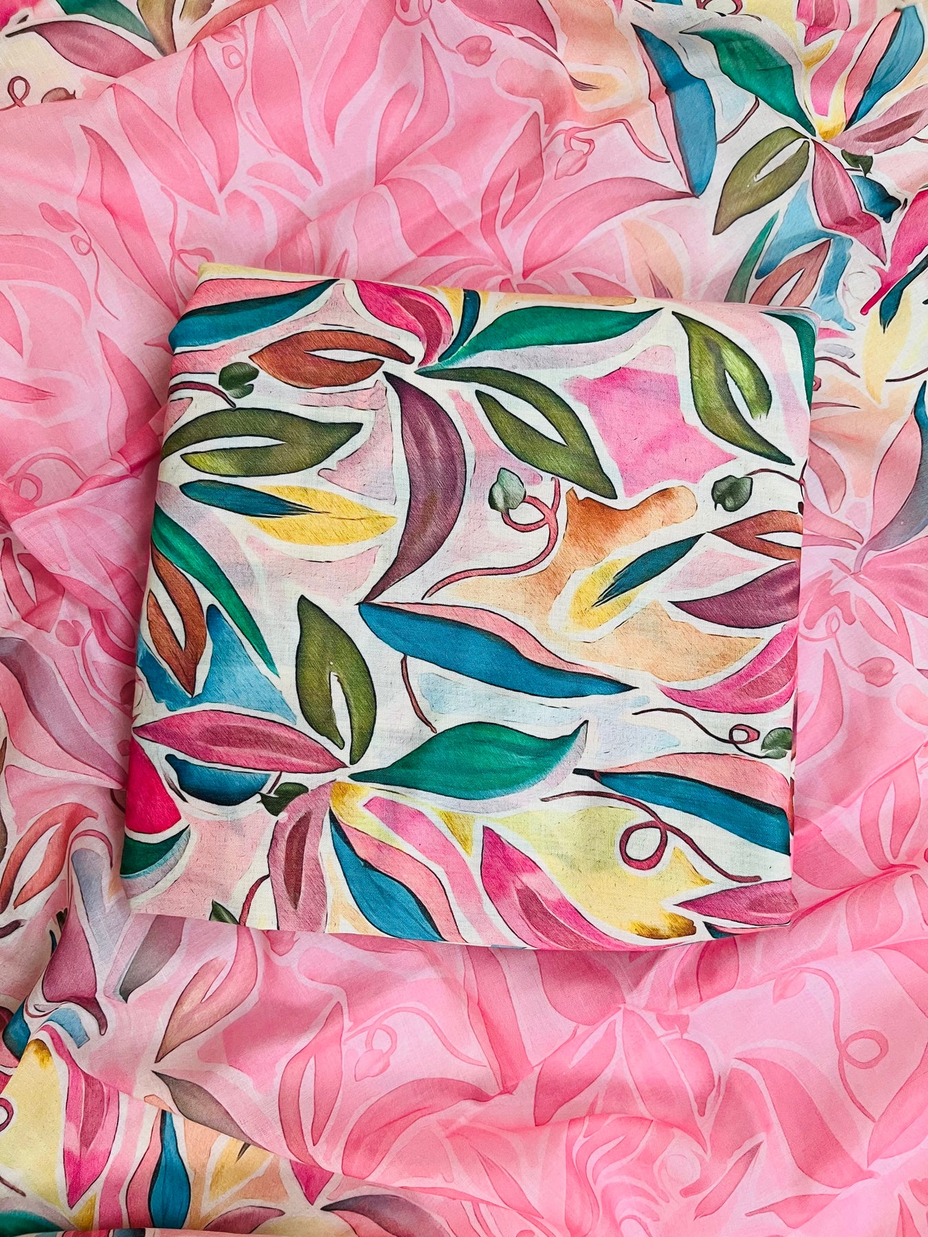 cotton peach florer  unstiched suit with  printed soft dupatta & bottom